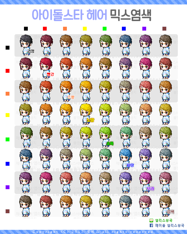 메이플스토리 아이돌스타 헤어 믹스염색표입니다.