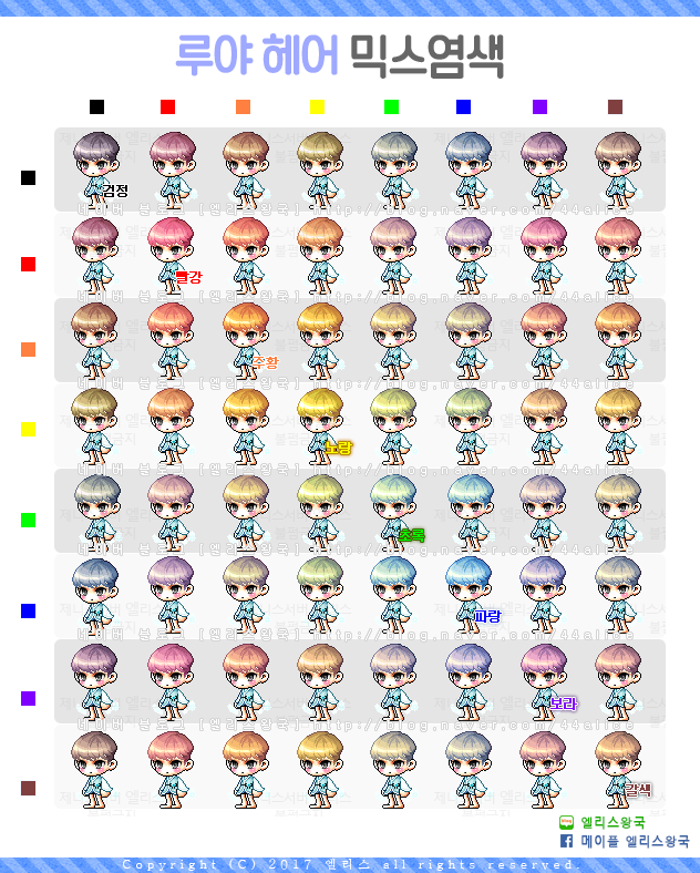메이플스토리 루야 헤어 믹스염색표입니다.
