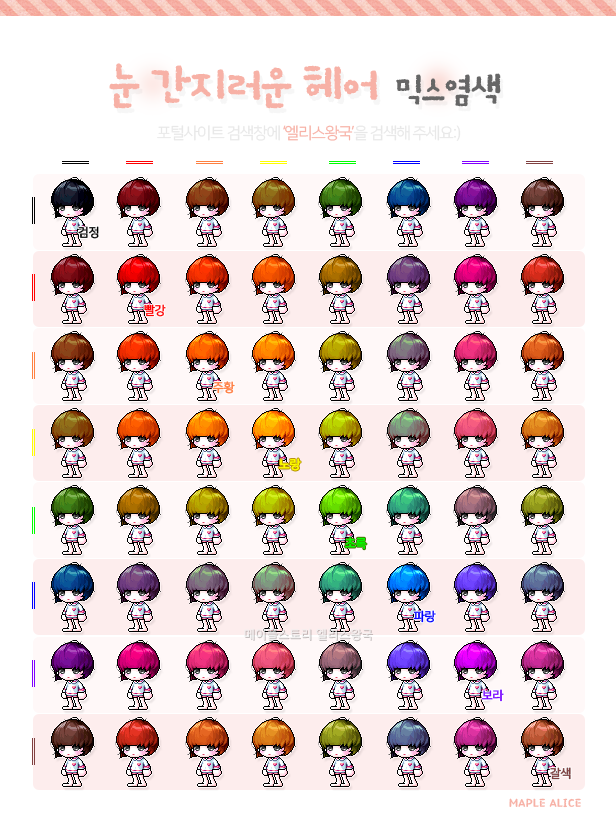 메이플스토리 눈 간지러운 헤어 믹스염색표