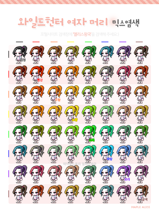 메이플스토리 와일드헌터 여자 머리 믹스염색표