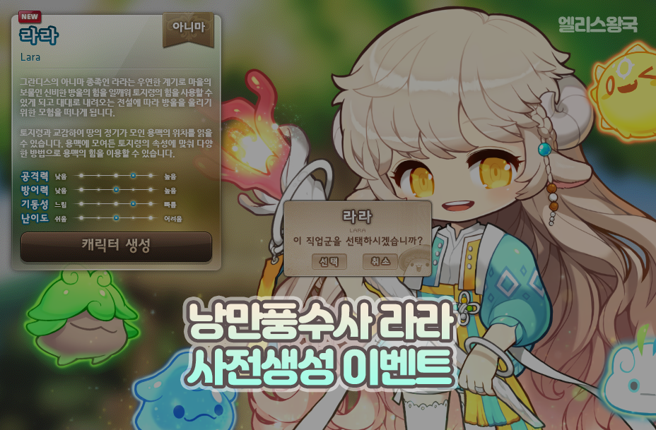메이플, 메이플스토리, 아니마 마법사, 메이플 신규직업, 메이플 신직업, 메이플 신캐, 메이플 신캐릭, 메이플 라라, 라라 사전생성, 낭만풍수사, 낭만풍수사 라라, 아니마 마법사 낭만풍수사 라라, 메이플스토리 신직업 라라, 라라 사전생성이벤트, 메이플 이벤트, 엘리스왕국
