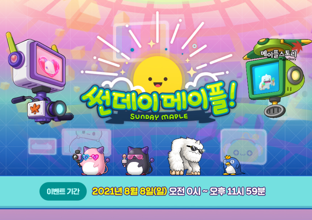 2021년 08월 08일 썬데이 메이플! - 위소울 5배, 몬컬 확률 추가, 의문의 모몽 지급, 분홍콩 획득량 2배