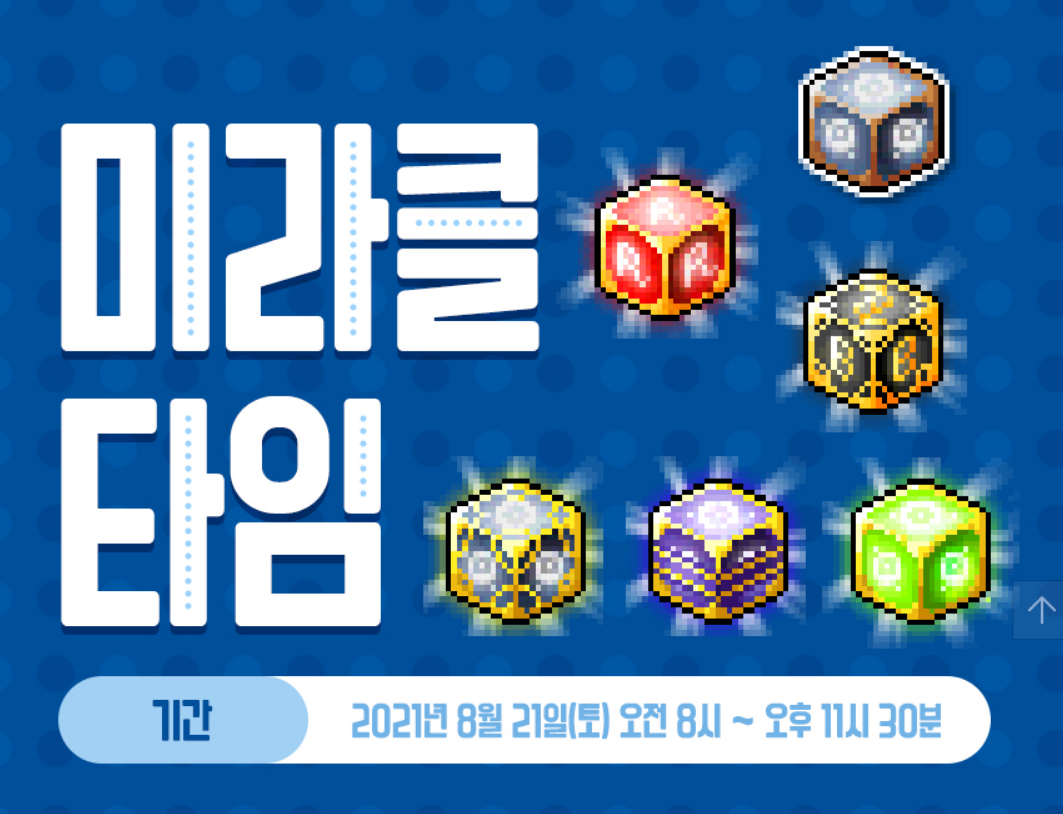 | 2021년 08월 29일 썬데이 메이플! - 몬파 클리어 경험치 50%, 분홍콩 획득량 2배, 선택 아케인 심볼 50개 지급 (0) | 2021.08.27 |