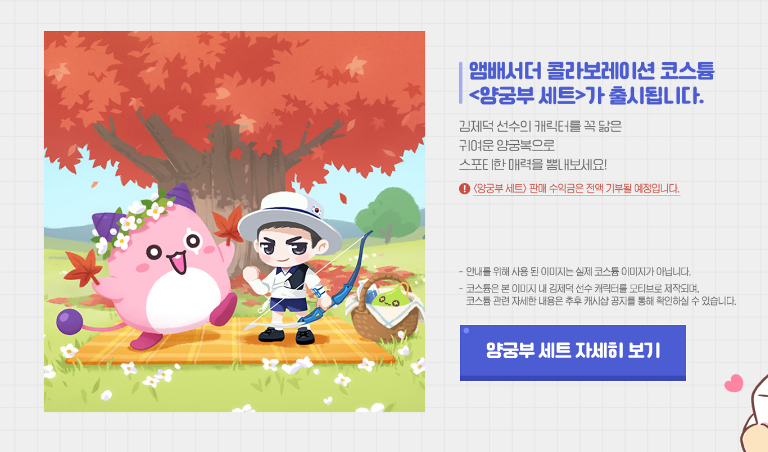 메이플스토리 앰버서더 콜라보레이션 - 메이플 용사의 로그오프 라이프 양궁 김제덕 선수편, 양궁부 세트 출시
