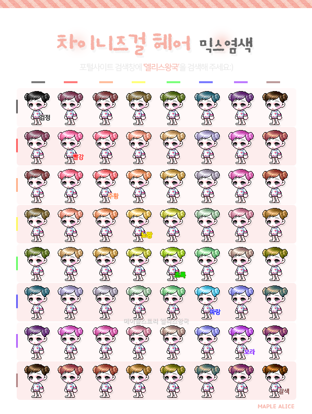메이플스토리 차이니즈걸 헤어 믹스염색표