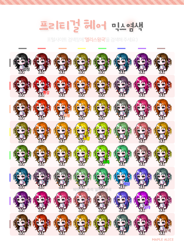 메이플스토리 프리티걸 헤어 믹스염색표