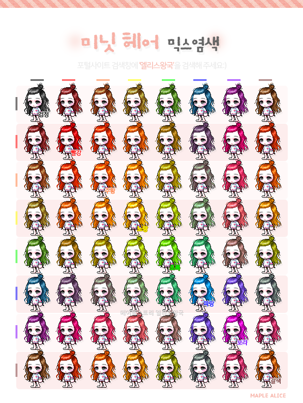 :: 메이플 믹스염색표 :: 미닛헤어 믹염, 미닛헤어 믹스염색