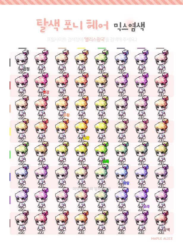 메이플스토리 탈색 포니 헤어 믹스염색표